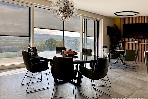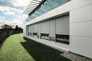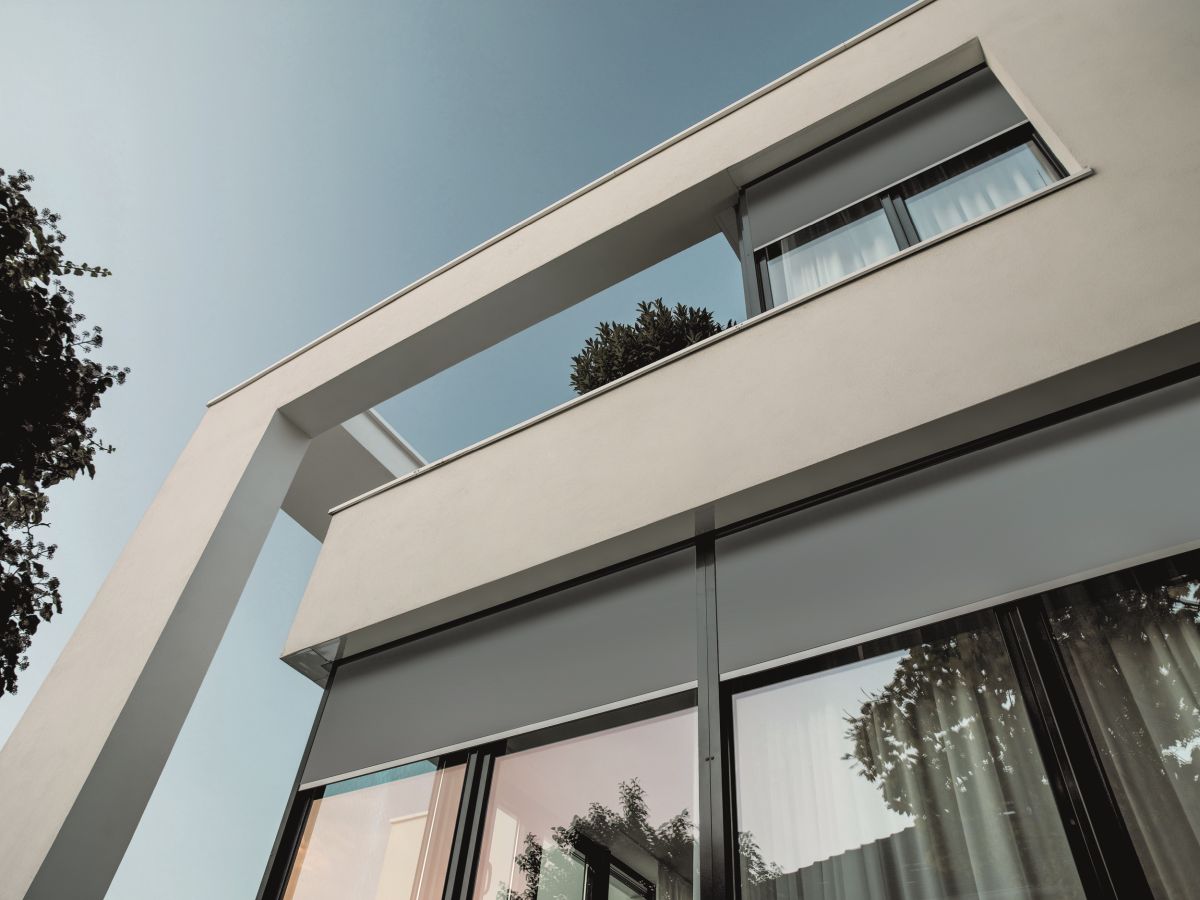 Das Zip screen Sonnenschutzsystem OLIMP.1 ist ein Stoff-Sonnenschutz in einem kompakten Außengehäuse. Es kann als Aufputz- oder Unterputzausführung installiert werden. Es ermöglicht eine teilweise oder vollständige Verdunkelung und trägt zur Verhinderung der Aufheizung Ihres Raumes bei. Es gibt vier Transparenzstufen für das Glasfasergewebe: 10%, 5%, 1%, 0% - blackout. Das Gehäuse besteht aus stabilem extrudiertem Aluminium und wird an der Außenseite des Fensterrahmens montiert. Es kann in jeder Farbe der RAL-Farbpalette lackiert werden, um eine hervorragende Farbübereinstimmung mit Ihrem Gebäude zu gewährleisten. Die seitlichen Aluminiumführungen mit dem Zip-System sorgen für eine gleichmäßige Bewegung des Gewebes entlang der Führungsschienen, während die Abschlussleiste für eine optimale Spannung des Gewebes in jeder Position sorgt.